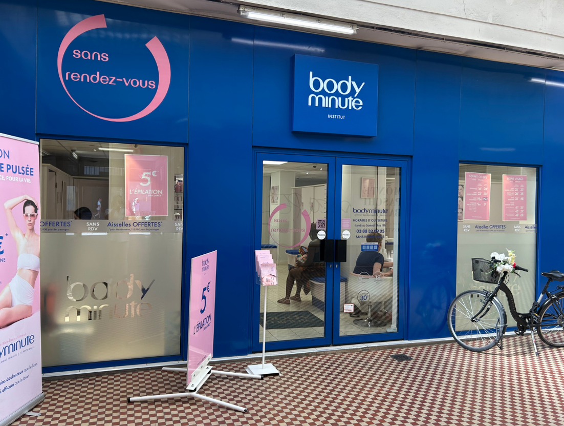Institut de beauté sans rendez-vous Bodyminute à STRASBOURG pour vos soins, épilations Situé 16, Rue De La Grange – Passage Rue Du 22 Novembre – 67000 STRASBOURG NOUVEAU : En plus du 3ème offert, votre épilation des aisselles offerte toute l’année ! Nos esthéticiennes facialistes sont prêtes à vous accueillir.