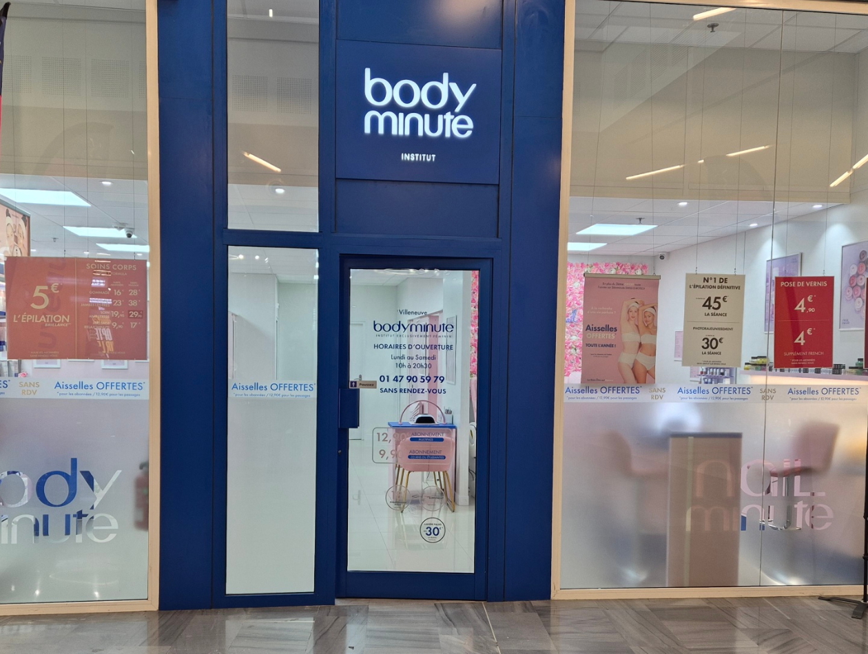 Institut de beauté sans rendez-vous Bodyminute à VILLENEUVE LA GARENNE pour vos soins, épilations Situé Centre Commercial Qwartz – 4 Boulevard Gallieni – 92390 VILLENEUVE LA GARENNE NOUVEAU : En plus du 3ème offert, votre épilation des aisselles offerte toute l’année ! Nos esthéticiennes facialistes sont prêtes à vous accueillir.